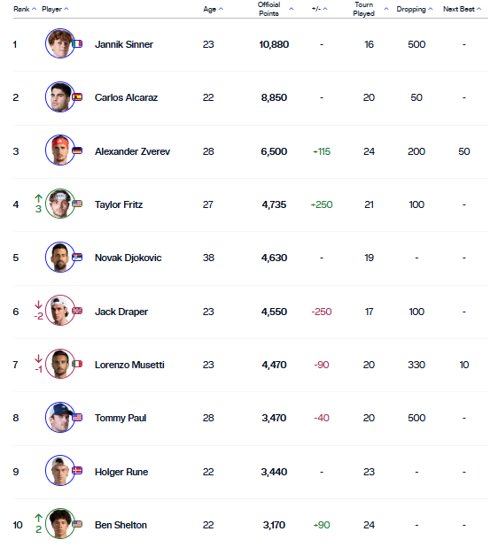 Ranking ATP – TOP 10